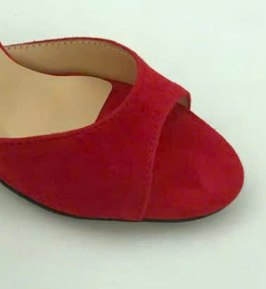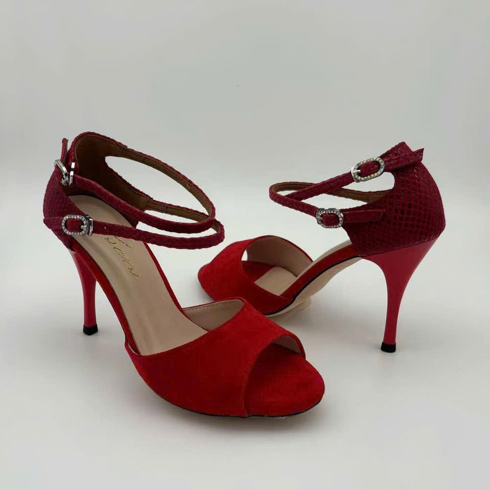 Another kind of Red – mixed media! We mix soft red suede in the front, with red snake-skin for firm hold on the back. So that you can shine in this Red pair, but unique mix.